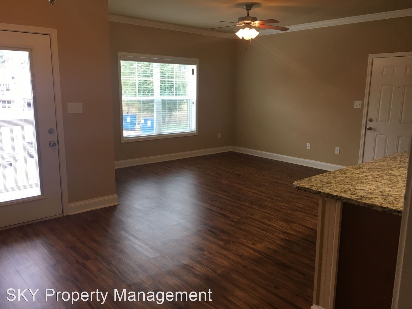 Pine Groves - Second Floor Open Concept Flat Stainless Steel Kitchen Appliances Granite Counters Stackable Washer and Dryer Connection Hardwood Laminate in Common Areas with Carpeted Bedroom Patio with Outdoor Storage Closet Water Utilities Included