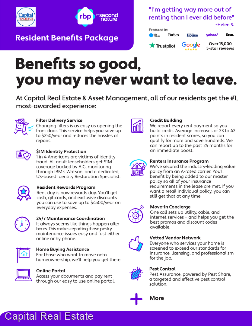 * All Capital Real Estate & Asset Management residents are enrolled in the Resident Benefits Package